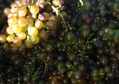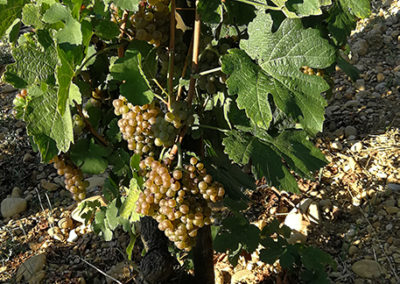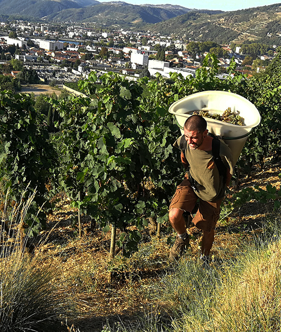 Et bien non, je ne vais pas comparer ma parcelle d’Hermitage à Monsieur DEBOISSIEU, gendre du Général de Gaulle et pourtant ancien propriétaire de la vigne. Pour moi, cette vigne c’est plus une vieille Dame raffinée que vous croisez sur le parvis de l’Église. Endimanchée, elle est majestueusement distinguée. Son âge centenaire lui confère ce respect sans faille qu’il lui convient. Elle a vu tant de choses. Rencontré tant de personnes. Vécu tant de saisons…Car en effet, cette parcelle est un joyau que j’espère garder encore très longtemps. Quoiqu’il en soit, aujourd’hui, nous l’avons vendangé. Cinq coupeurs et jusqu’à 3 porteurs pour en venir à bout. Car monter des pentes escarpées avec 70 kg sur le dos et des cailloux ronds sous les pied, cela ressemble plus au programme d’Alcatraz que d’une journée champêtre au milieu des vignes… Au final, belle vendange en quantité et en qualité. Sur cette colline de l’Hermitage les degrés potentiels y sont toujours plus élevés qu’ailleurs. Encore la preuve aujourd’hui : 14.5% contre 13% en moyenne pour les Crozes-Hermitage déjà vendangés. Pour demain, un challenge impossible à relever. Celui de terminer la cueillette des raisins blancs. Bah, nous allons essayer quand même…Qui sait !