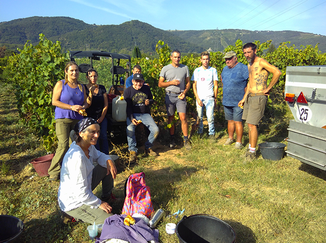 Le domaine représente 15 ha de vignes. La densité moyenne est de 6 000 ceps à l’hectare, soit 90 000 pieds de vigne. Sur chaque cep, comptons en moyenne 4 raisins. Ce qui représente 360 000 grappes à vendanger. Et ce, à la main de nos saisonniers. Car oui, les vendanges, c’est aussi une histoire humaine avec l’embauche d’une petite dizaine de personnes durant une quinzaine de jours.